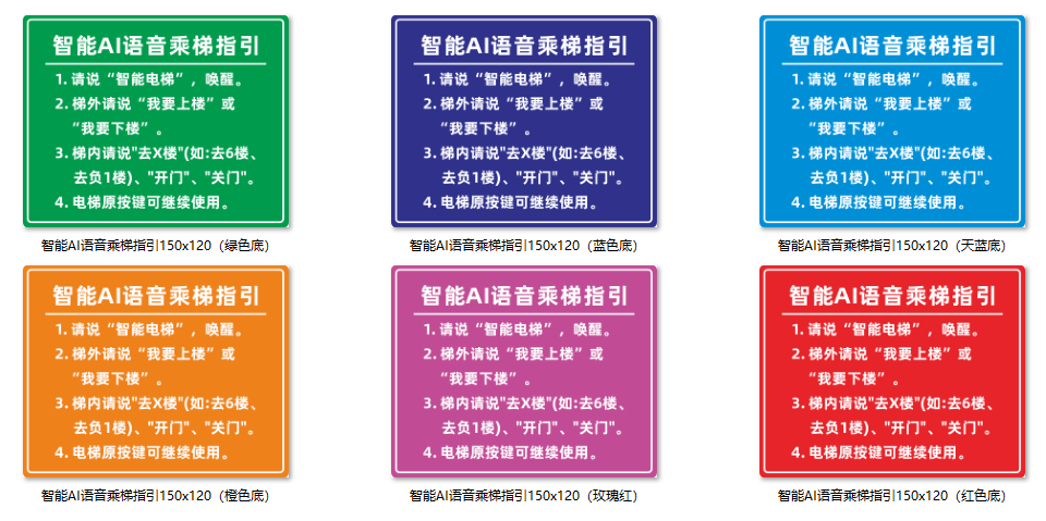 語音乘梯指引背景色和文字可以定制修改,但建議簡潔,內(nèi)容太多乘梯人沒有耐心全部看完。