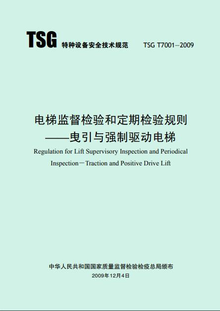 《電梯監督檢驗和定期檢驗規則——曳引與強制驅動電梯 TSG T7001—2009》質量監督檢驗檢疫總局