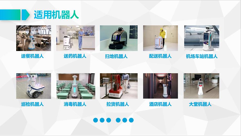 1、機(jī)器人替代人工越來(lái)越被廣泛應(yīng)用,如掃地機(jī)器人、服務(wù)機(jī)器人、送餐機(jī)器人、巡檢機(jī)器人、送藥機(jī)器人、消毒機(jī)器人等;