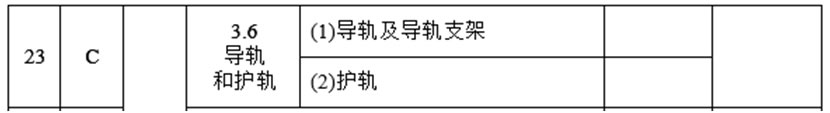(8)將3.6項的檢驗項目及類別調(diào)整為:“導(dǎo)軌和護軌 C”,檢驗內(nèi)容與要求調(diào)整為: