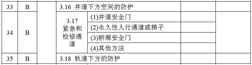 (17)增加3.18項,項目及類別為:“軌道下方的防護 B”,檢驗內(nèi)容與要求為:“如果人員可以進入電梯運行軌道的下方,應(yīng)當設(shè)置無孔的防護隔障,以擋住和收納可能從斜行電梯上掉落的碎片或者零件”;