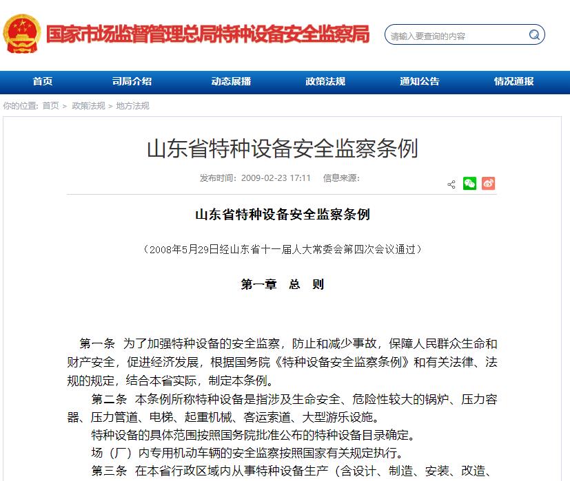 山東省特種設(shè)備安全監(jiān)察條例