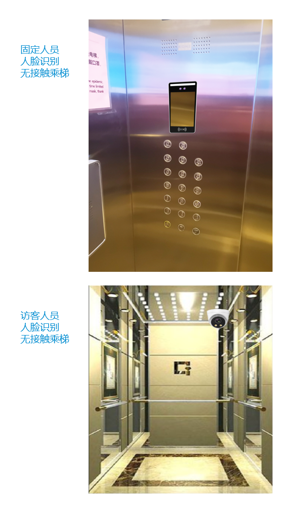 人臉無接觸乘梯:只需要人臉登記個(gè)人信息、刷臉即可實(shí)現(xiàn)無接觸乘梯通行,單個(gè)樓層刷臉自動點(diǎn)亮按鍵,多個(gè)樓層刷臉后手動按鍵,或者增加語音模塊,多個(gè)樓層權(quán)限刷臉后,直接語音乘梯,說無權(quán)限的樓層不會點(diǎn)亮按鍵,有權(quán)限的才能語音乘梯,公共樓層可直接語音乘梯。
