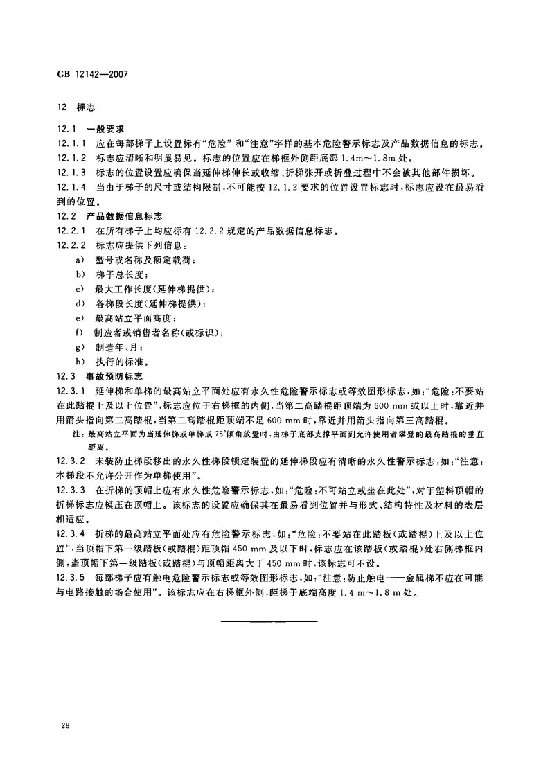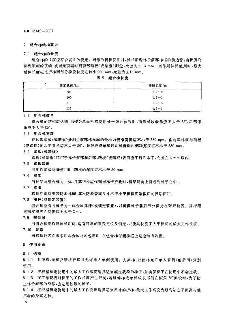 《便攜式金屬梯安全要求 GB 12142-2007》國家質(zhì)量監(jiān)督檢驗(yàn)檢疫總局、國家標(biāo)準(zhǔn)化管理委員會(huì)