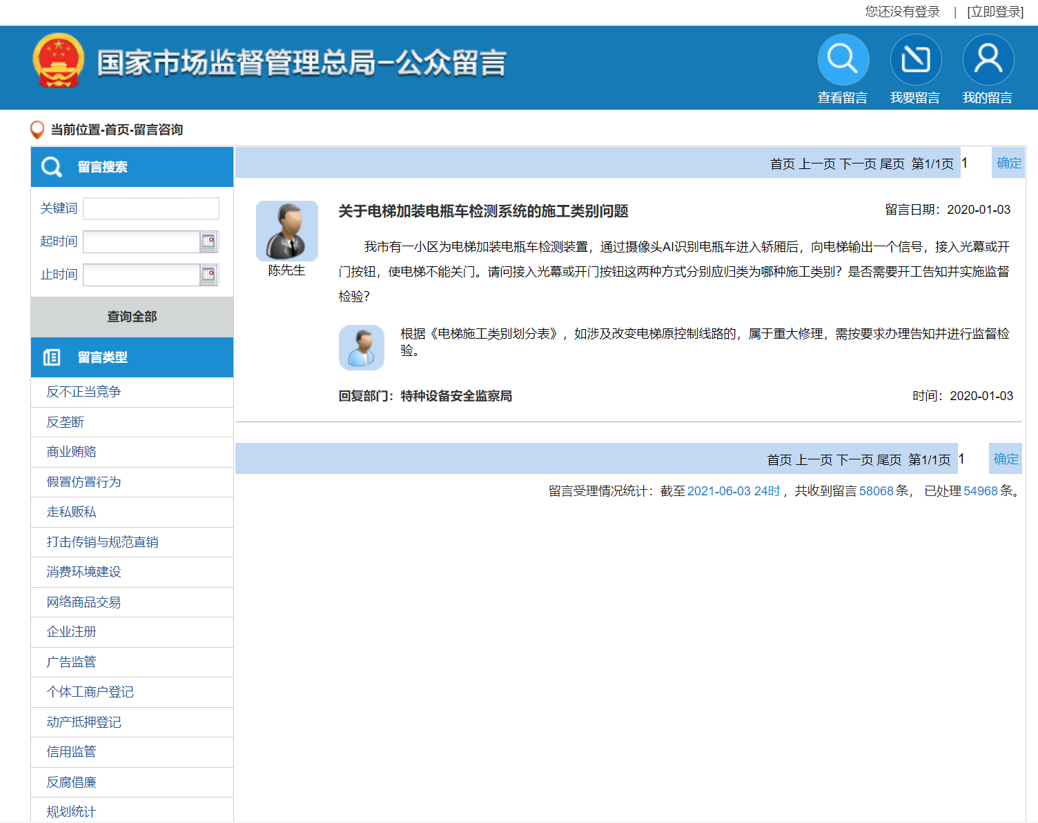 • 回復(fù)部門:特種設(shè)備安全監(jiān)察局